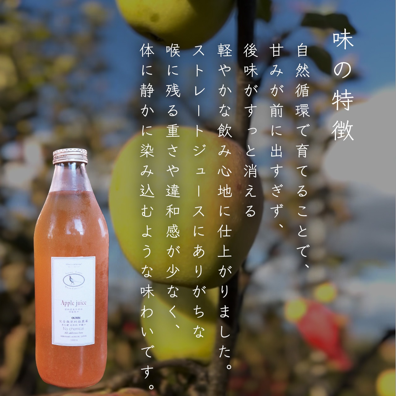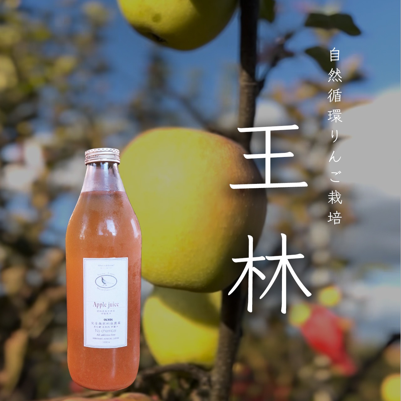 自然循環農法で育てた**王林100%**のりんごジュースです。